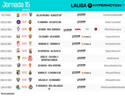 الجدول الزمني لليوم الخامس عشر من بطولة لاليجا هايبرموشن 2025/26