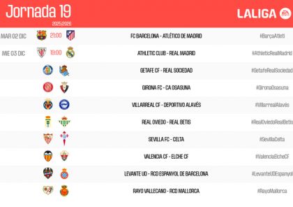 مواعيد المباريات المبكرة ليوم 19 من بطولة LALIGA EA SPORTS 2025/26