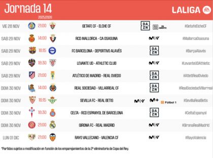 الجدول الزمني لليوم الرابع عشر من بطولة لاليجا إي سبورتس 2025/26