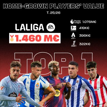يتمتع لاعبو LALIGA المحليون بأعلى قيمة سوقية في أوروبا: 1460 مليون يورو